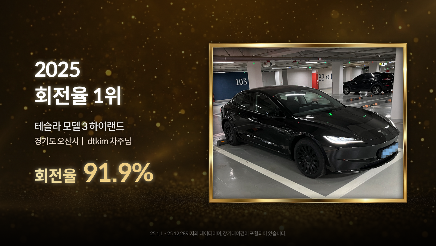 타운카에서 가장 높은 회전율(대여일 수/노출일 수)을 보인 차량은 경기도 오산시 dtkim 차주님의 테슬라 모델 3 하이랜드 차량입니다! 이 차량은 대여료가 하루 46,000원으로 엄청 저렴한 가격으로 차주님께서 대여해주시면서 인기가 정말 많았던 차량인데요, 타운카에 있는 모든 테슬라 차량중에 가장 저렴한 테슬라입니다!