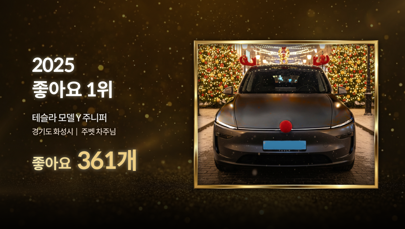 타운카에서 올 한 해 가장 많은 좋아요를 받은 차량은 화성시 주벳 차주님의 테슬라 모델 Y 주니퍼입니다. 크리스마스를 맞아 차량을 꾸미고 사진을 등록해주시며 많은 사람들의 관심과 사랑을 받았는데요!