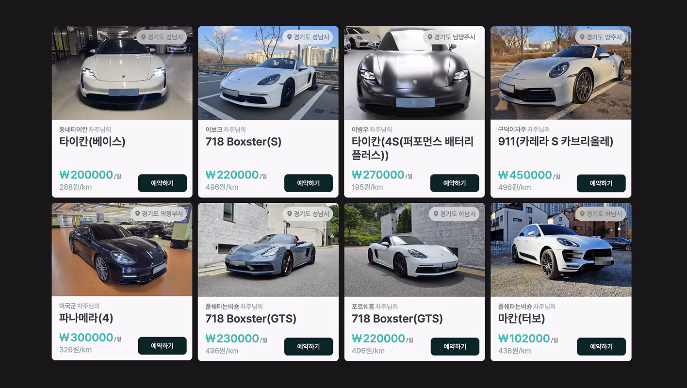 사실 유저들은 차주님들이 직접 관리하는 좋은 컨디션의 포르쉐를 합리적인 가격에 경험 할 수 있다는 점 때문에 타운카에서 포르쉐 대여수요는 꾸준할 수 밖에 없다고 생각합니다. 🚗