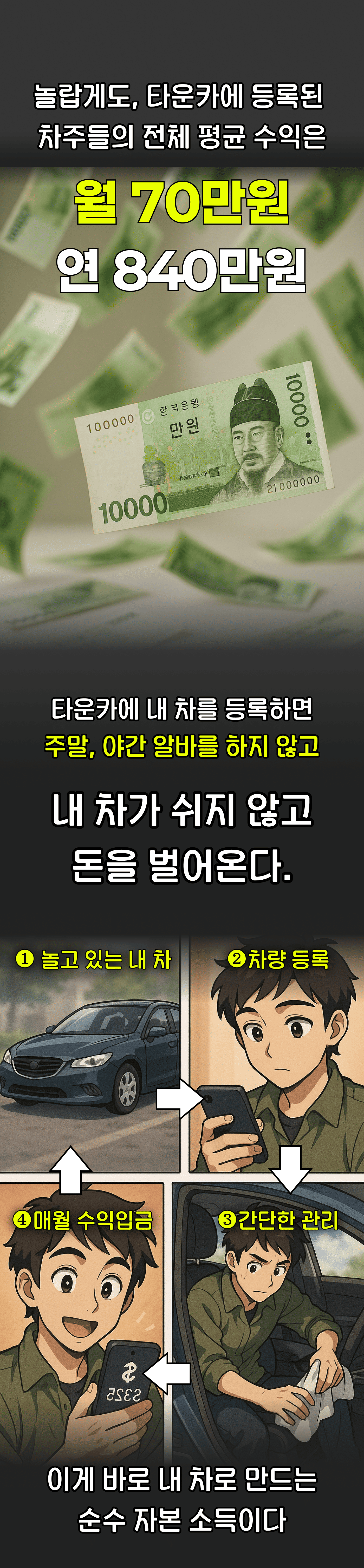행동하는 사람만 살아남는다.지금 바로, 타운카에 당신의 자동차를 등록하라.